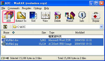 请先开启 WinRAR 程式,选择你要压缩的档案,再按「Add」。或