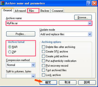 在「Archive Format」内选择你要制作的压缩格式(RAR 或 ZIP),最后按「确定」。B. 如果你使用 WinZip: 1.