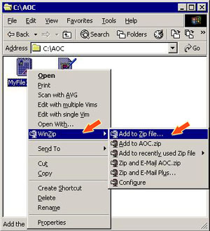 于「我的电脑」内,选择你要压缩的档案,右击滑鼠,选择「WinZip」-> 「Add to Zip file」。